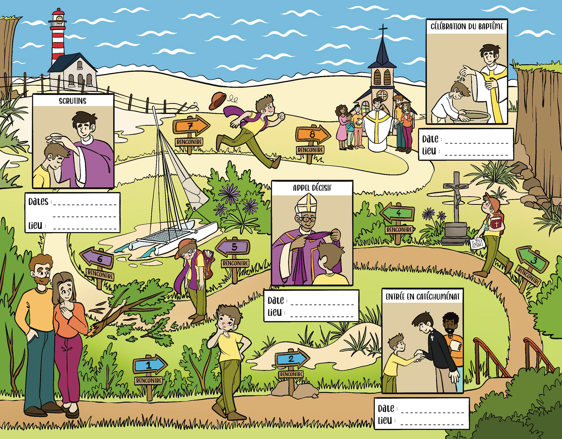 Depuis 2023 je réalise des illustrations à destination de manuel de catéchisme. Elle apparaissent dans les ouvrages suivants :